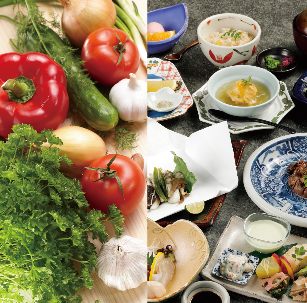 こだわり抜いた新鮮な野菜や果実を使い、食材の持ち味を最大限に活かしたお料理をお届け致します。繊細な四季折々の味覚をお楽しみ下さい。